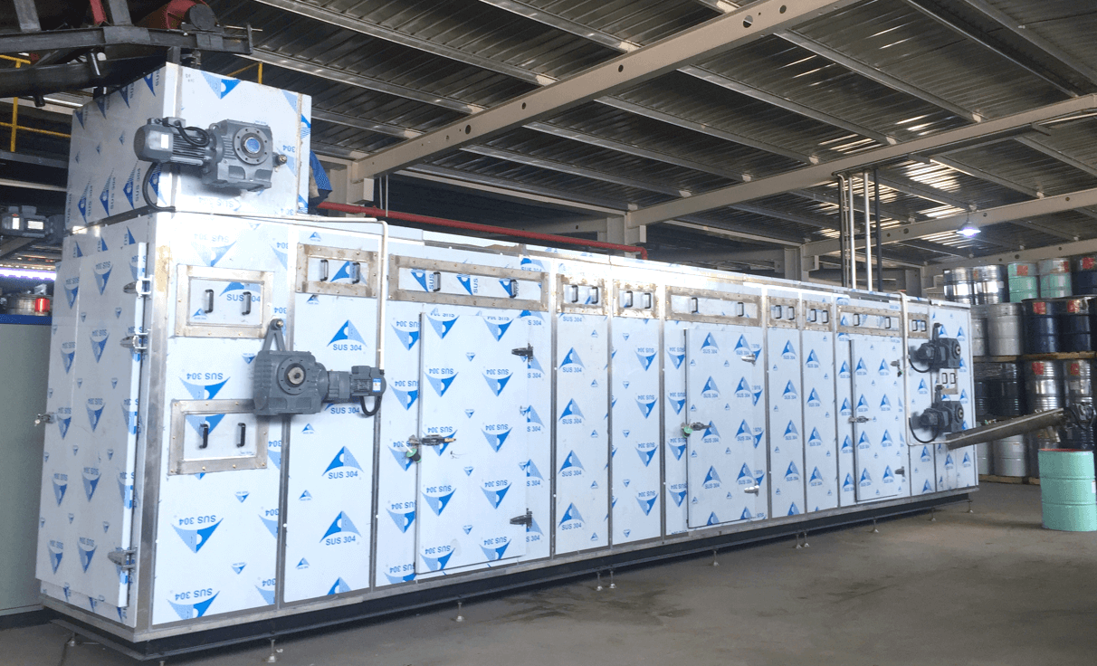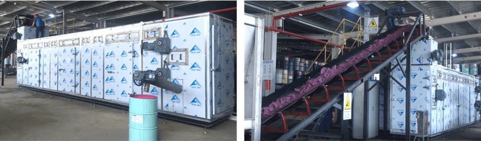 2018年4月,新會中集與綠潤科技簽訂“水性漆渣污泥源頭減量BOT項目”,針對該公司產(chǎn)生水性漆渣污泥,由綠潤投資、建設(shè)低溫?zé)岜酶苫O(shè)備進行源頭減量并承接運營,合同結(jié)束后移交設(shè)備。干化前含水率為75-85%之間水性漆渣污泥通過低溫?zé)岜梦勰喔苫O(shè)備減量化后的物料含水率為10%左右,日處理量達6-8噸。